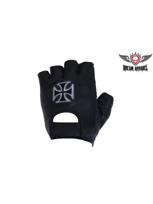 Biker Fingerless Gloves With Chopper Cross SKU # GL2029-11