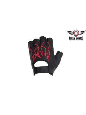 Motorcycle Red Flame Fingerless Gloves SKU # GL2019