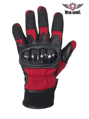 Leather Motorcycle Gloves - Red/Black SKU # GLZ108-RED
