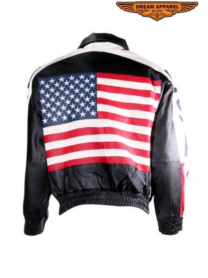 USA Flag Leather Motorcycle Jacket SKU # MJ275