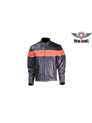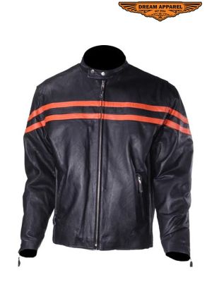 Mens Leather Jacket With One Orange Stripe SKU # MJ795-ORG-11