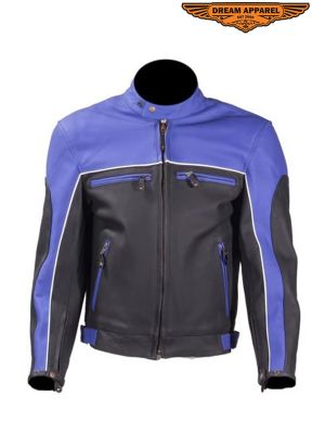 Mens Blue Racer Jacket W/ Reflective Piping SKU # MJ780-BLUE-01