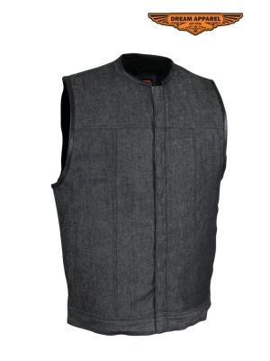 Men's Motorcycle Club Vest - Black Denim SKU # MV8033-ZIP-BDW