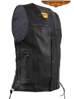 Mens Leather Vest With Concealed Gun Pockets SKU # MV8015-NK