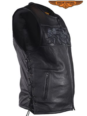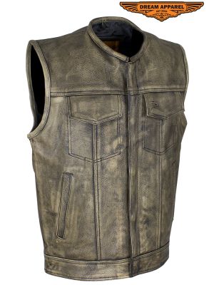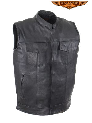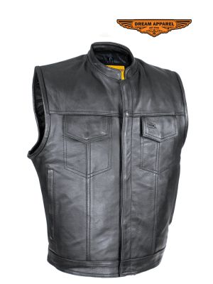 Mens Leather Club Vest With Gun Pocket & Zipper SKU # MV320-ZIP-01