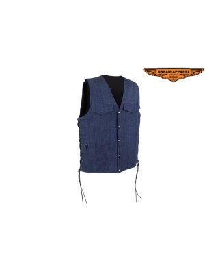 Men's Dark Blue Denim Motorcycle Club Vest SKU # MV5050-D.BLUE.DENIM