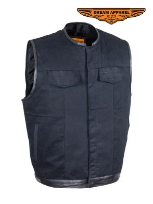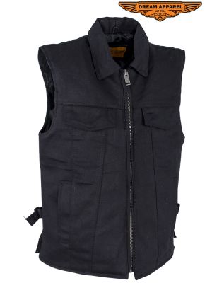 Black Canvas Motorcycle Vest SKU # MV303-CV