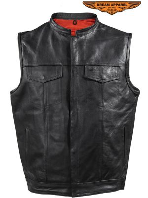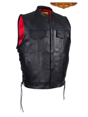 Leather Gun Pocket Vest with Red Liner SKU # MV9316-ZIP-11