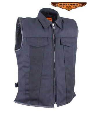 Men's Zippered Black Denim Club Vest SKU # MV8020-ZIP-BD