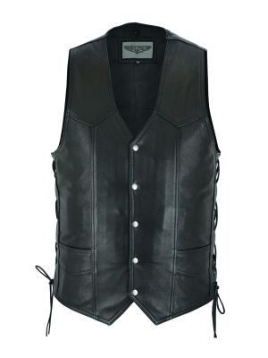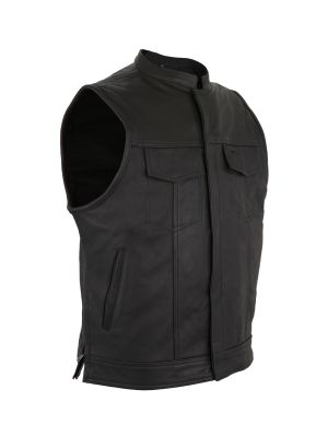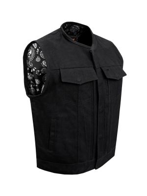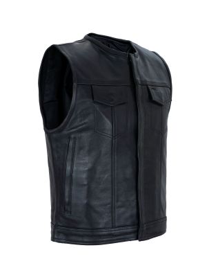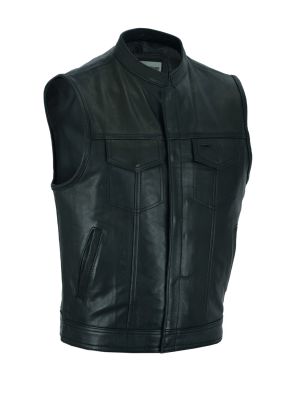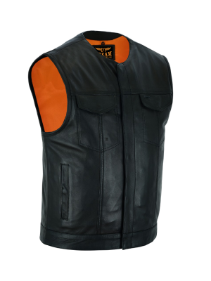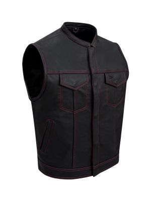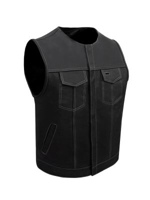 Mens Gun Pocket Vest White Thread Motorcycle Vest SKU # MV78008-PL-WT-88