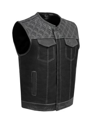 Men's Zippered 1/2" Collar Motorcycle Club Vest SKU # MV8007-ZIP-11
