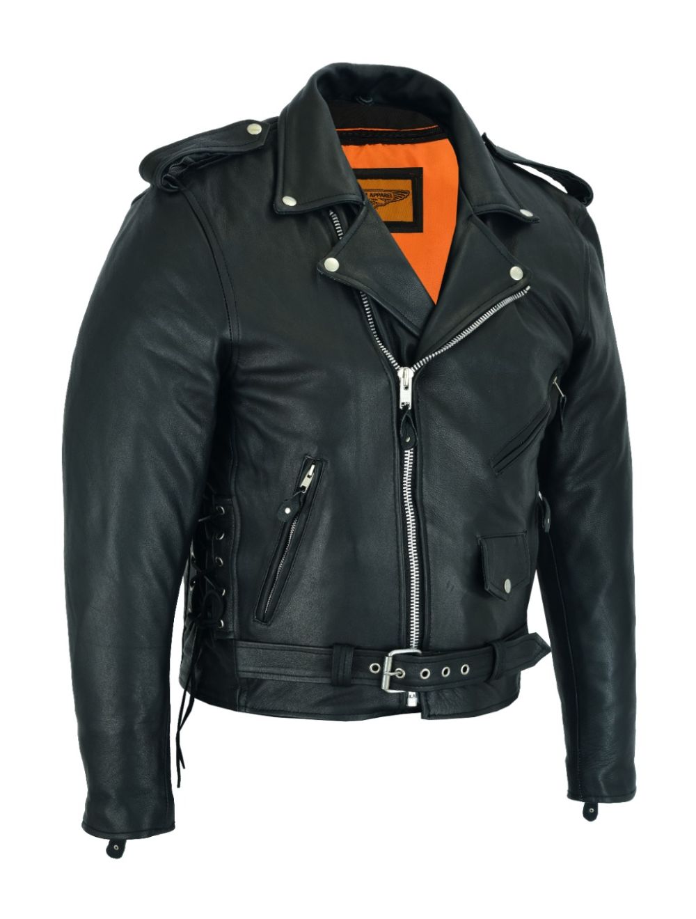Wear the same style jacket the bikers have always worn in Dream Apparel's heavy-duty, soft leather jacket. Just like theirs, our jackets feature a full, zip-out lining that runs through the sleeves, epaulets on the shoulders, a full panel on the back to add your clubs' colors, a fold-down collar with button snaps, side laces, and a sturdy, front zip-up closure. You'll feel great as you tighten up the leather belt and zippered cuffs while opening the two zippered air vents on the back. It won't matter if you're going out for the day or just around the corner, you'll never have to leave it behind with two waist pockets, two concelaed gun pockets, a stash pocket, and a zippered pocket on the left front. Ride proud and save money in this phenomenal leather jacket by Dream Apparel.
