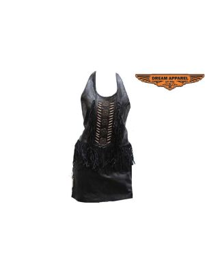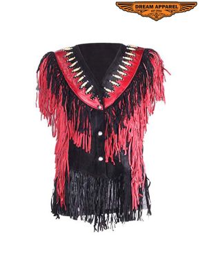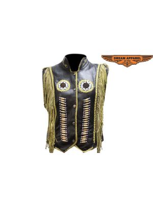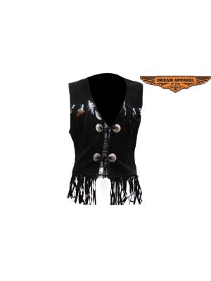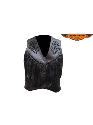 Womens Western Style Leather Vest SKU # LV450-BLK