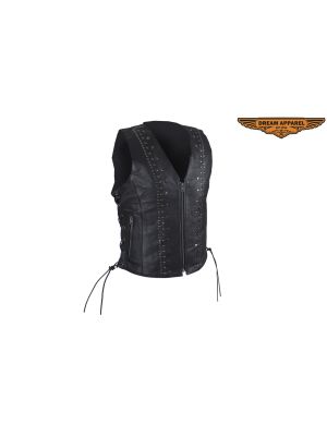 Womens Motorcycle Plain Traditional Vest SKU # LV8502-RC
