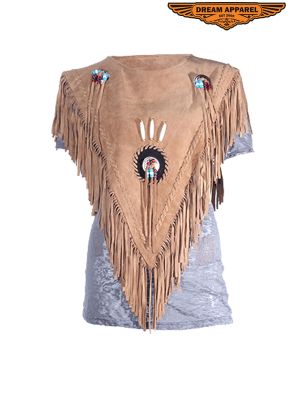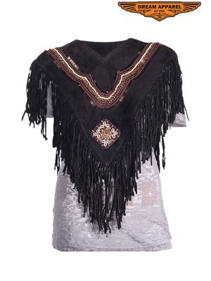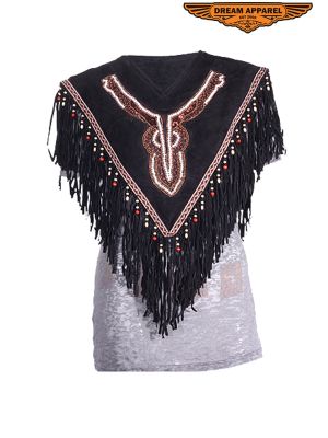 Women Leather Poncho Fringes SKU # LV2