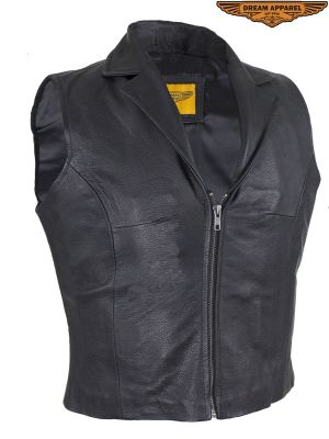 Womens Leather V Neck Vest SKU # LV480-11
