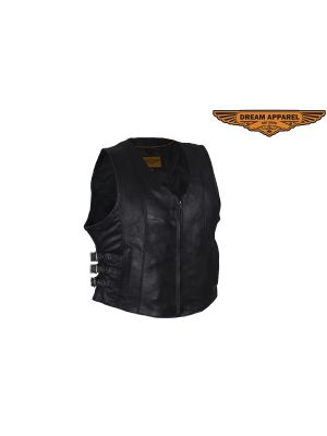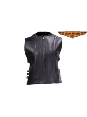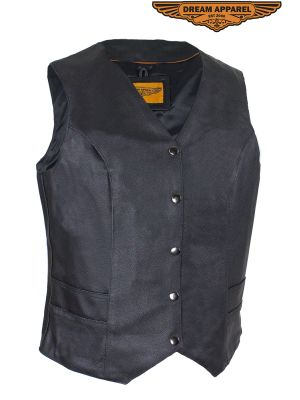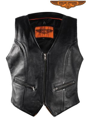 Women's Leather Tactical Motorcycle Vest SKU # LV8503-11