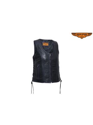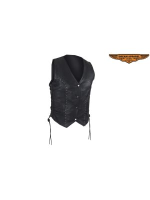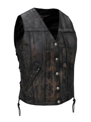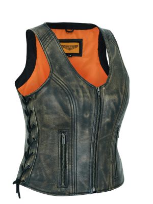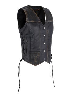 Women's Distressed Brown Naked Leather Vest SKU # LV8514-12N