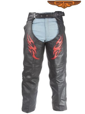 Flame Embroided Motorcycle Biker Chaps SKU # C325-FLAME