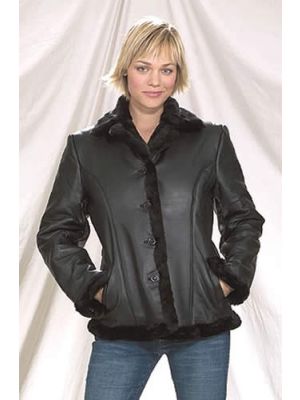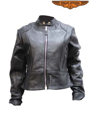 Womens Biker Leather Jacket With Zippered Cuffs SKU # LJ212-NEW-SS