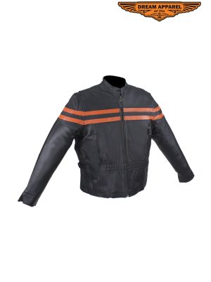 Womens Motorcycle Jacket W/ Orange Stripes SKU # LJ253-RC