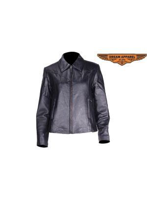 Womens Racer Leather Jacket SKU # LJ255-SS